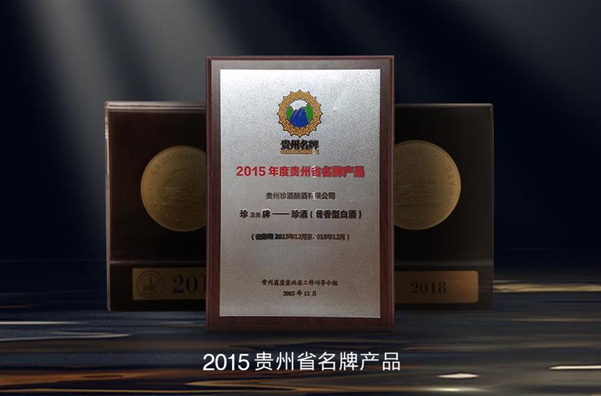 • 2015年貴州珍酒榮獲貴州省名牌產品稱號