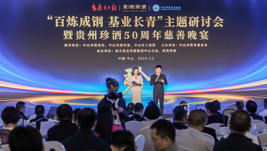 12月8日,由中山市教育基金會主辦,貴州珍酒、南方報業傳媒集團中山分社承辦的“百煉成鋼 基業長青”主題研討會暨貴州珍酒50周年慈善晚宴在廣東中山舉辦。中山市委原常委、軍分區原政委瞿建波,市委第三巡察組組長彭立新,中山市教體局局長彭曉新,共青團中山市委員會書記熊定鵬,中山市工商聯副主席譚文輝,中山市教育基金會理事長肖業恒,貴州珍酒酒業副總經理兼品牌總監凌晨,南方日報經營公司中山分公司總經理丁保權,以及來自中山市的企業家代表,各商會和協會代表共計300余人參加活動。研討會上,與會嘉賓圍繞企業建設與發展話題進行分享,深入探討企業發展長青之道。