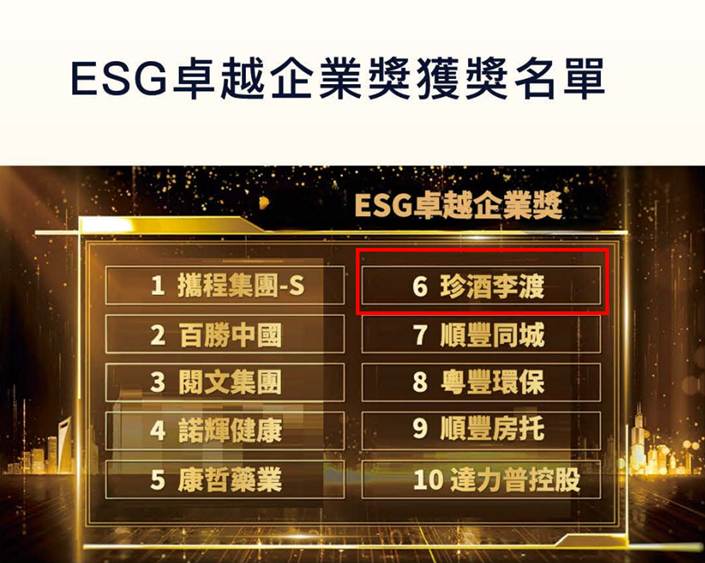 僅10家港股公司入選!珍酒李渡榮獲“ESG卓越企業獎”
