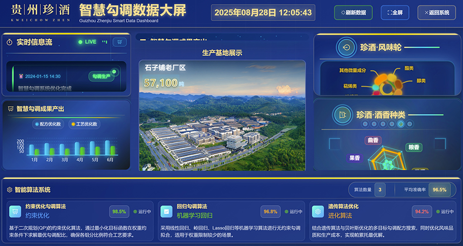 (“貴州珍酒智慧勾調平臺”數據大屏)