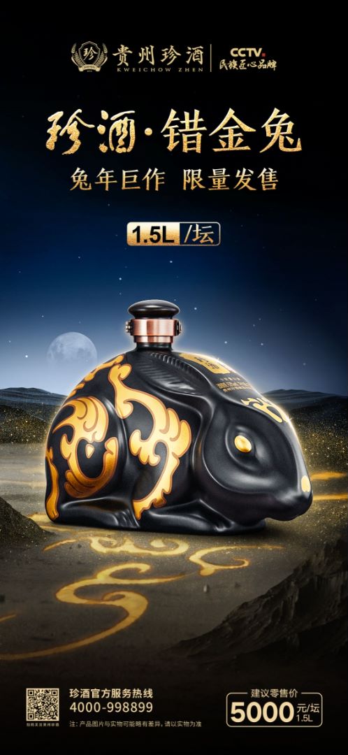 珍酒·錯(cuò)金兔蘊(yùn)含著珍酒的工匠精神和兔生肖美好的意象,具有驅(qū)邪降魅、四方健康的吉祥寓意,集收藏、饋贈鎮(zhèn)宅等用途。口感純正,老熟醇和,回味悠長,小批量勾調(diào)。