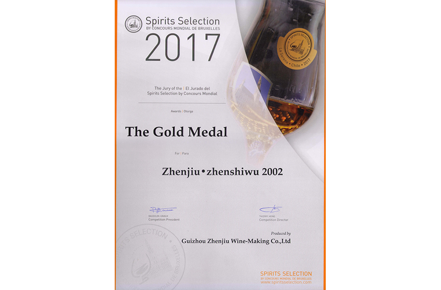 2017年、2020年,珍酒·珍十五兩次榮獲布魯塞爾國際烈性酒大獎賽金獎